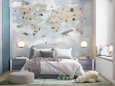 Фотообои Карта мира для детей ( 23760 )Стоимость зависит от размеров
