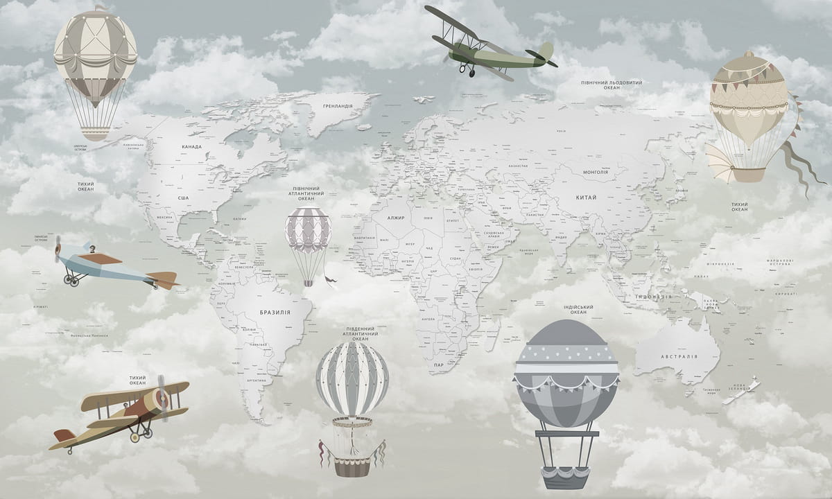 Фотообои Карта и воздушные шары, УКР ( 24141 )Стоимость зависит от размеров