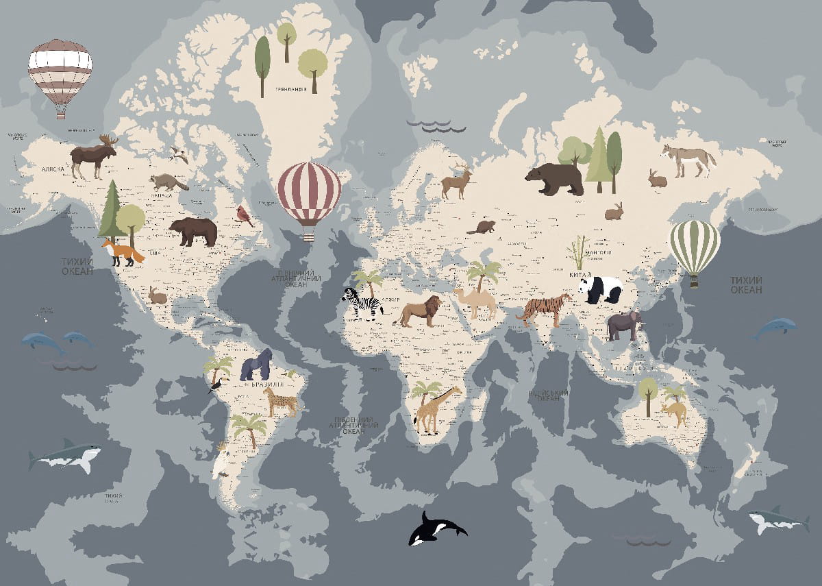 Фотообои Карта со зверушками, УКР ( 24450 )Стоимость зависит от размеров