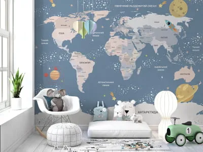 Фотообои Карта мира детская, УКР ( 26657 )Стоимость зависит от размеров
