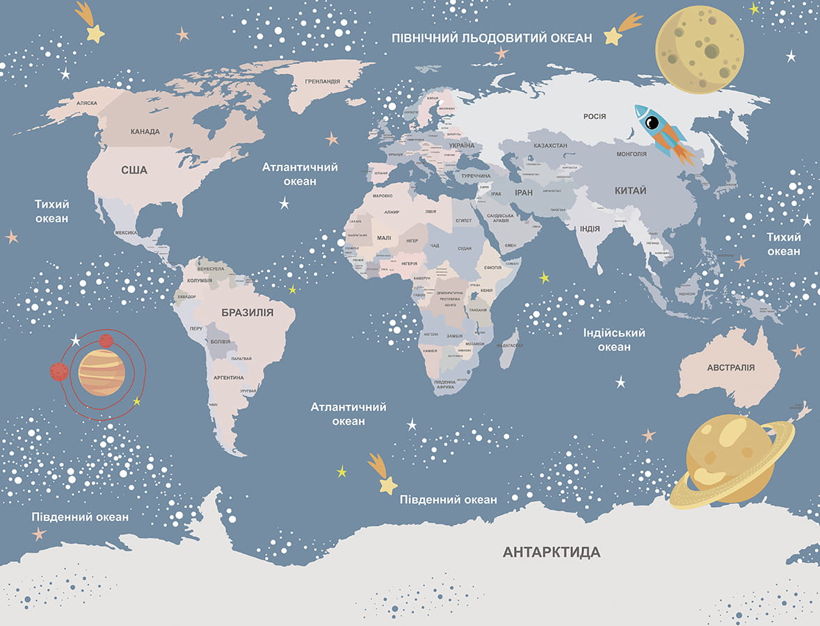 Фотообои Детская космическая карта, УКР ( 24458 )Стоимость зависит от размеров