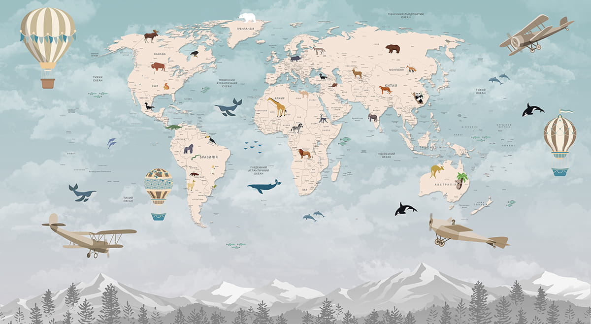 Фотообои Карта со зверушками, УКР ( 24450 )Стоимость зависит от размеров