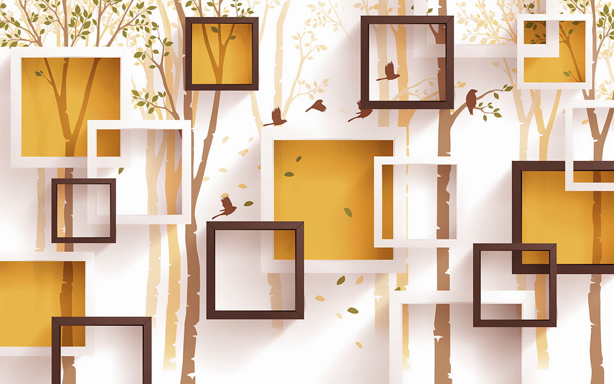 Фотообои Деревья и квадраты 3Д ( 26882 )Стоимость зависит от размеров