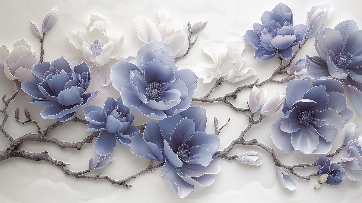 Фотообои Синие цветы магнолии 3Д ( 26958 )Стоимость зависит от размеров