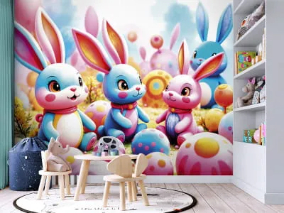 Фотообои Веселые зайчата 3Д ( 27026 )Стоимость зависит от размеров