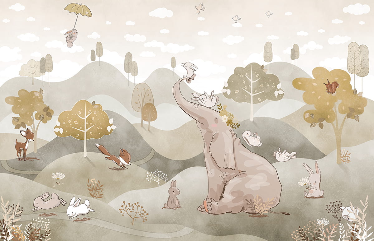 Фотообои Слон с зайчиками ( 27155 )Стоимость зависит от размеров