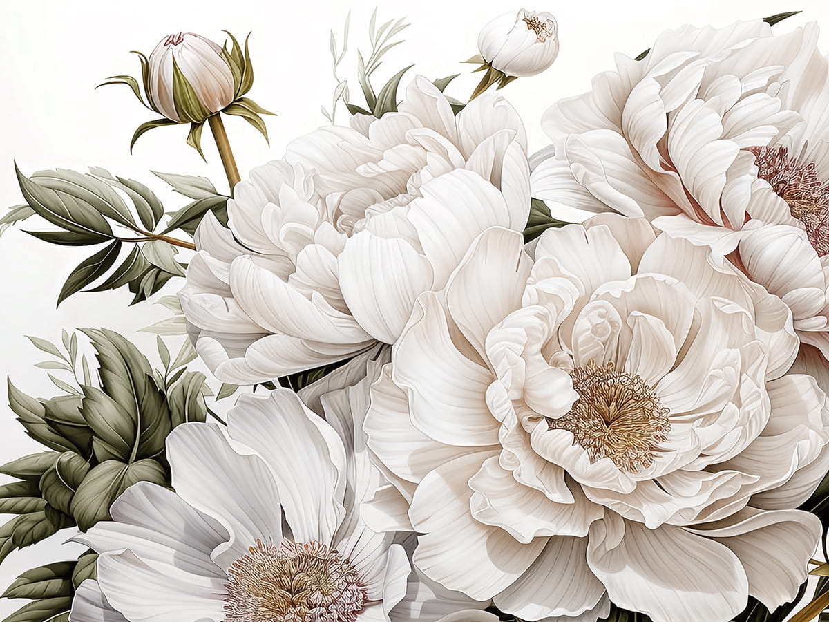 Фотообои Белые пионы ( 26591 )Стоимость зависит от размеров