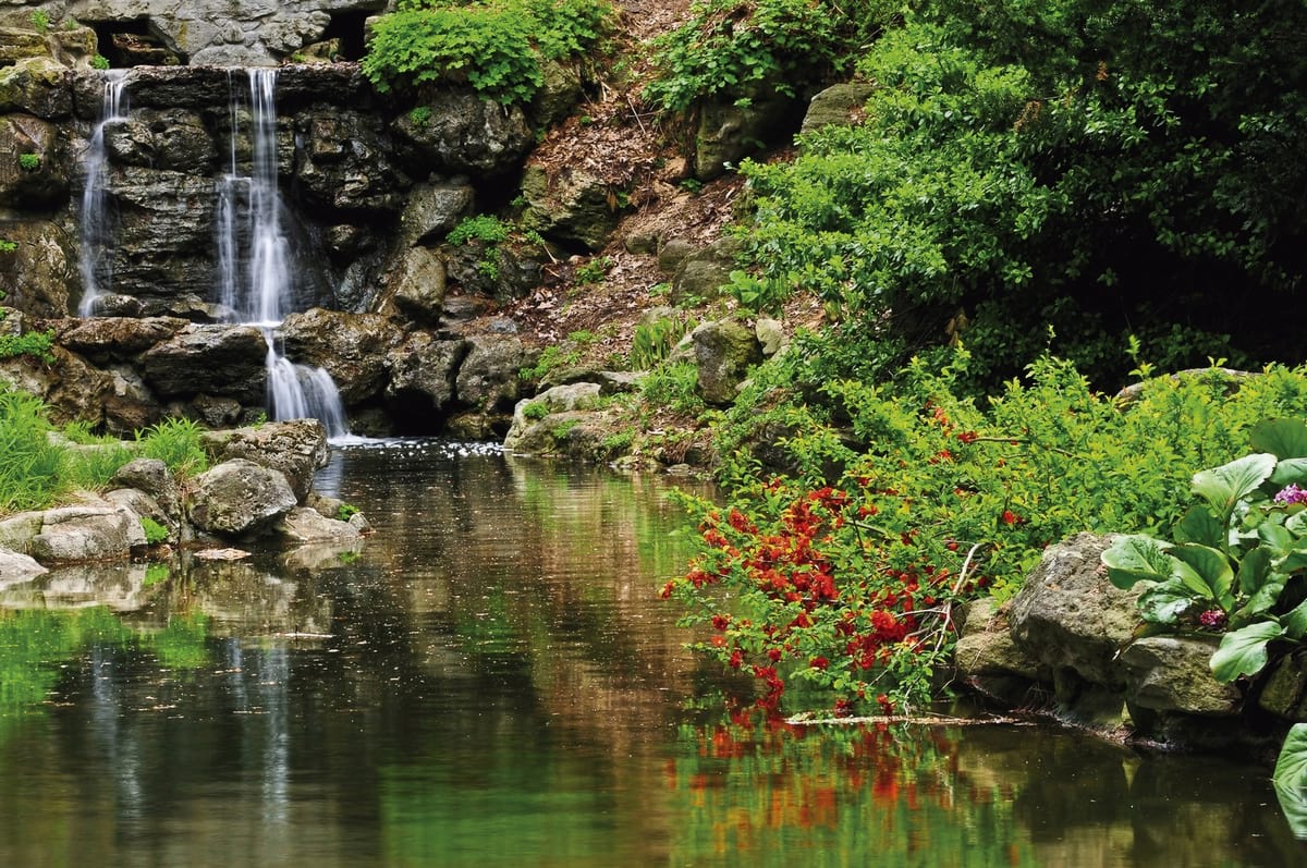 Фотообои Искусственный водопад в саду ( 9180 )Стоимость зависит от размеров