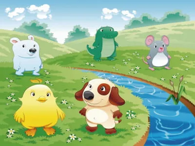 Фотообои Милые зверушки у реки ( 3322 )Стоимость зависит от размеров