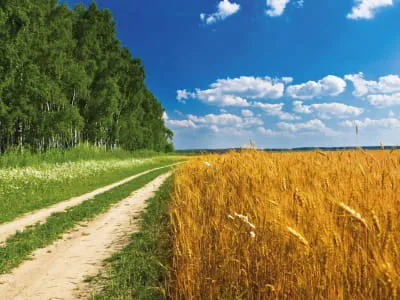 Фотообои Дорога около пшеничного поля ( 3992 )Стоимость зависит от размеров