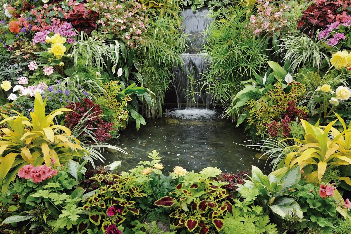 Фотообои Маленький водопад в саду ( 4000 )Стоимость зависит от размеров