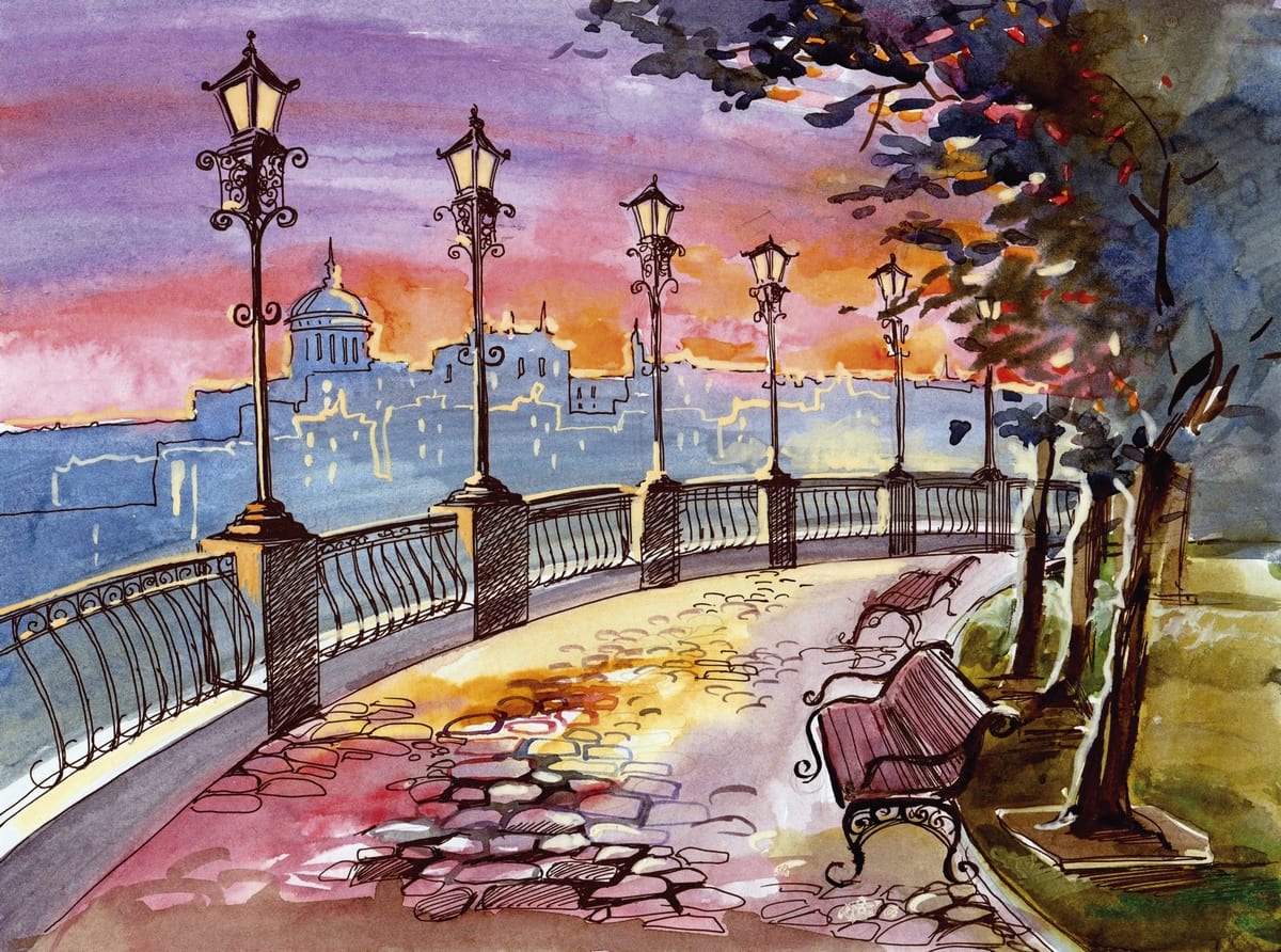 Фотообои Набережная рисунок ( 4349 )Стоимость зависит от размеров