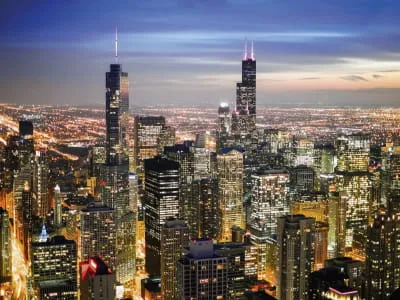 Фотообои Небоскрёбы ночного Чикаго ( 18388 )Стоимость зависит от размеров