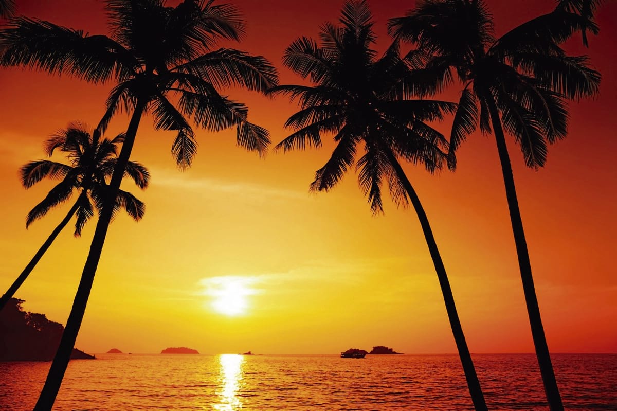 Фотообои Закат пальмы море ( 16319 )Стоимость зависит от размеров