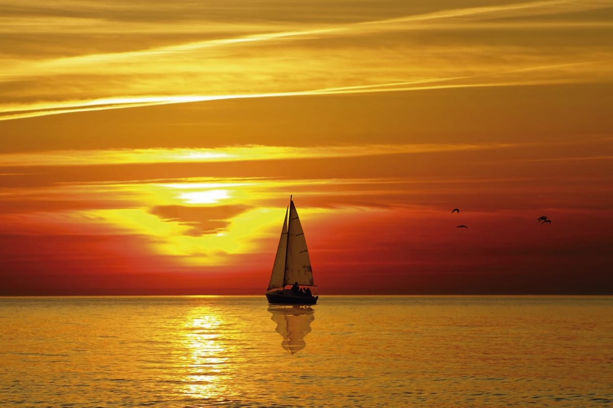 Фотообои Яхта на фоне заката ( 4821 )Стоимость зависит от размеров