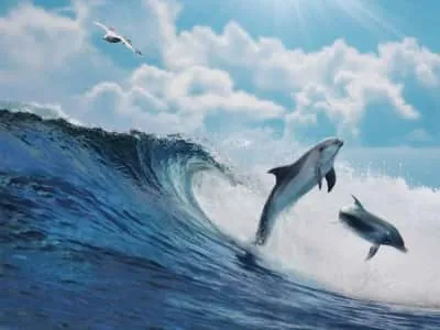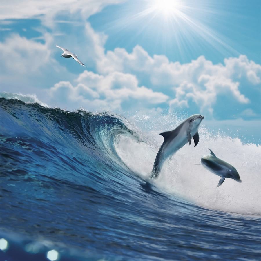 Фотообои Волна и дельфины ( 12189 )Стоимость зависит от размеров