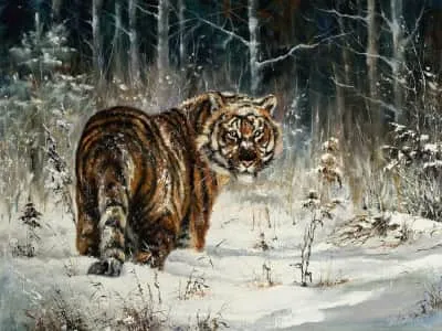 Фотообои Тигр в зимнем лесу ( 5521 )Стоимость зависит от размеров