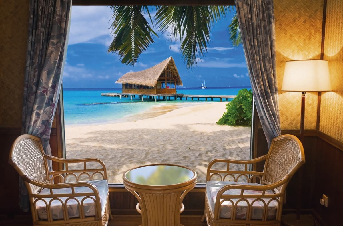 Фотообои Солнечный пляж за окном ( 6607 )Стоимость зависит от размеров