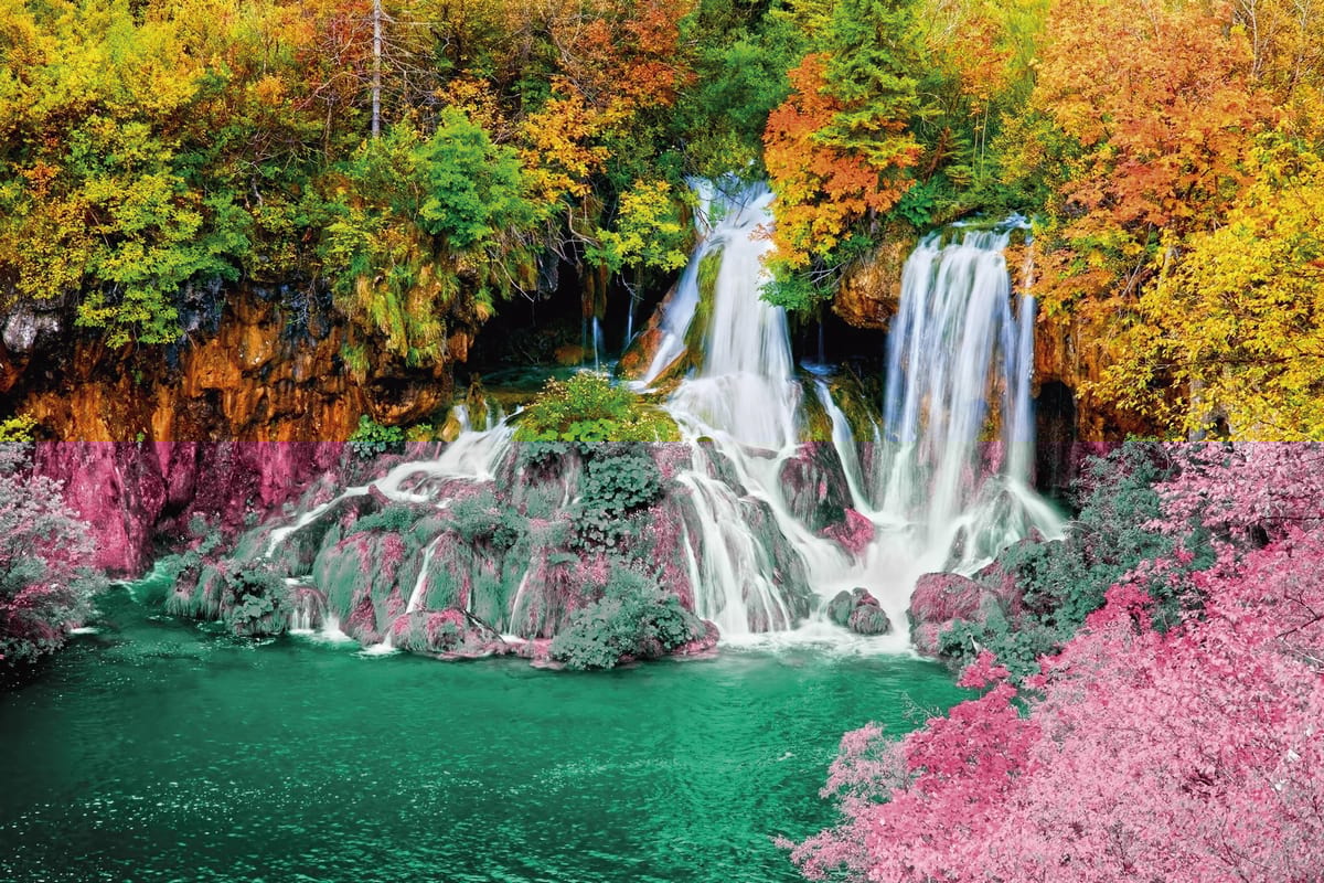 Фотообои Водопад в осеннем парке ( 6800 )Стоимость зависит от размеров