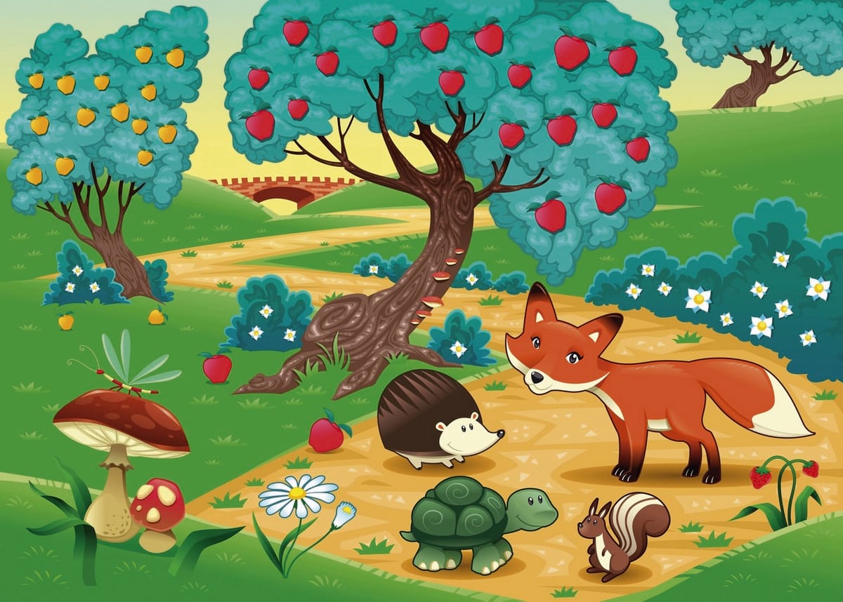 Фотообои Зверята под яблоней ( 6978 )Стоимость зависит от размеров