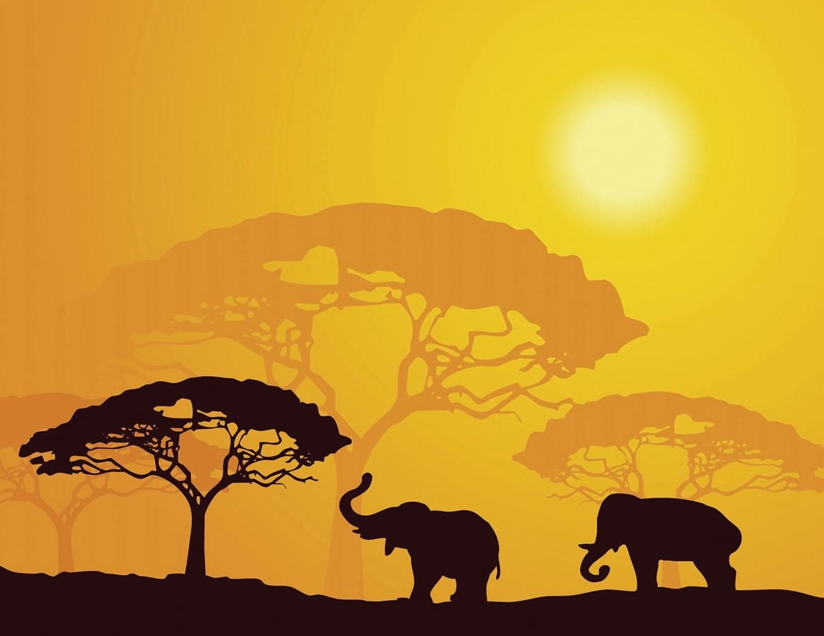 Фотообои Слоны на закате ( 5070 )Стоимость зависит от размеров