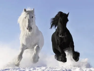 Фотообои Чёрная и белая лошадь ( 7892 )Стоимость зависит от размеров