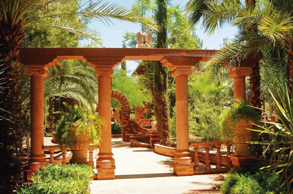 Фотообои Красные колонны в саду ( 8690 )Стоимость зависит от размеров