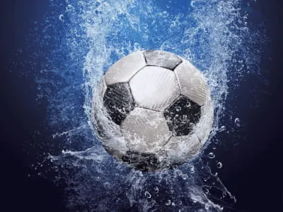 Фотообои Футбольный мяч на синем фоне ( 26950 )Стоимость зависит от размеров