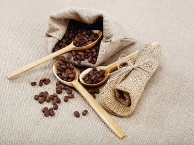 Фотообои Мешковина и кофейные зерна ( 6538 )Стоимость зависит от размеров