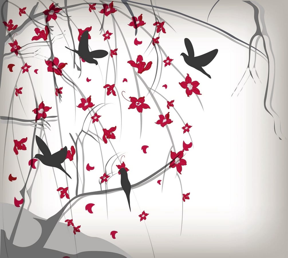 Фотообои Птицы на цветущем дереве ( 9033 )Стоимость зависит от размеров