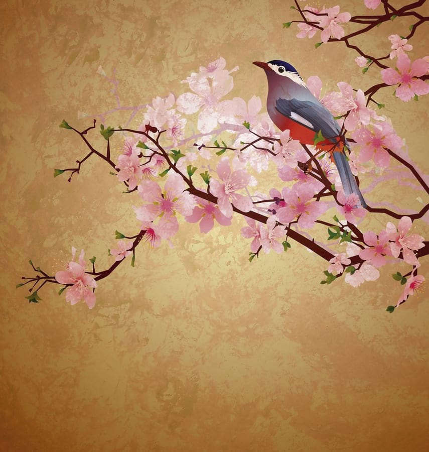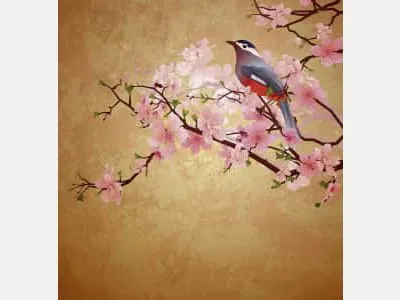 Фотообои Птици в цветущих ветвях ( 27059 )Стоимость зависит от размеров