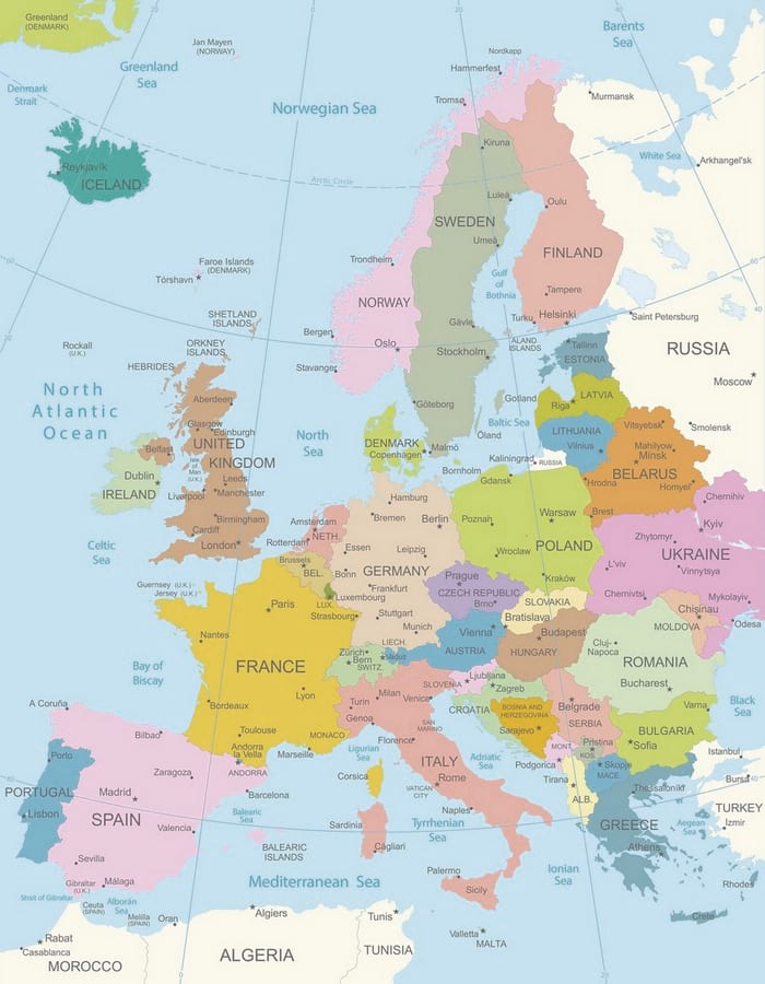 Фотообои Карта Европы ( 9516 )Стоимость зависит от размеров