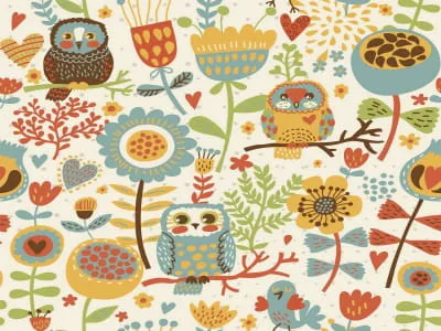 Фотообои Совы и цветы ( 9769 )Стоимость зависит от размеров